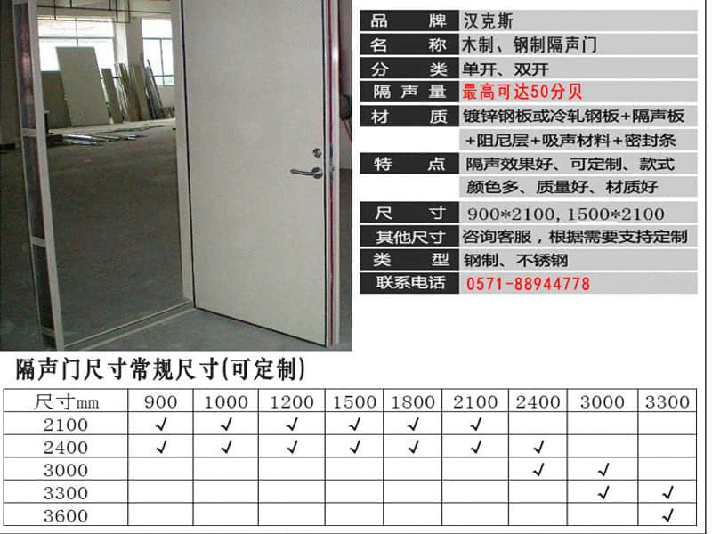杭州漢克斯隔音門(mén)可完全定制,隔音門(mén)面板采用不銹鋼材質(zhì),有冷軋鋼板、電鍍鋅鋼板等材質(zhì)可選;不銹鋼隔音門(mén)的尺寸、彎管、開(kāi)啟方式等都可以根據(jù)現(xiàn)場(chǎng)狀況定制;具有防火隔聲雙重效果,是很好的鋼制防火隔音門(mén);降噪適應(yīng)性好,啟閉靈活,可以滿(mǎn)足不同隔音量的要求。