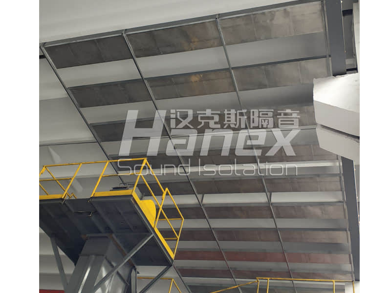 1、經(jīng)杭州漢克斯隔音技術(shù)人員現(xiàn)場踏勘發(fā)現(xiàn),破碎機生產(chǎn)線工作運行時,其產(chǎn)生的噪聲一部分通過屋面繞射至居民區(qū)。因此,在生產(chǎn)車間內(nèi)的破碎機正上方區(qū)域設(shè)計安裝吸音吊頂。