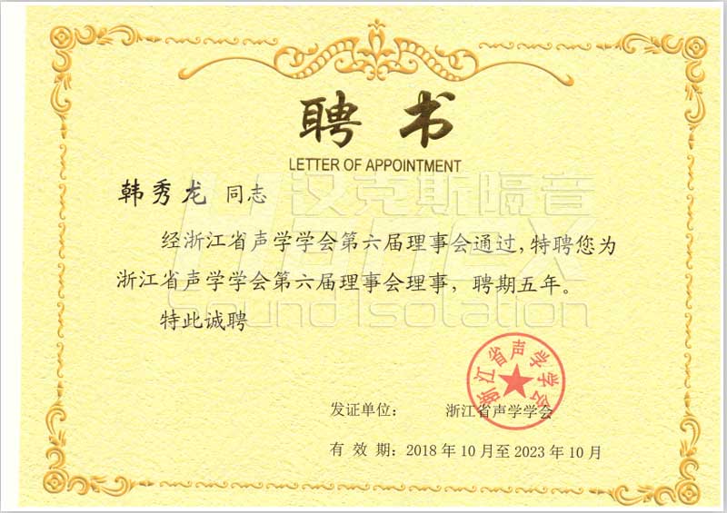 聲學(xué)學(xué)會(huì)理事聘書